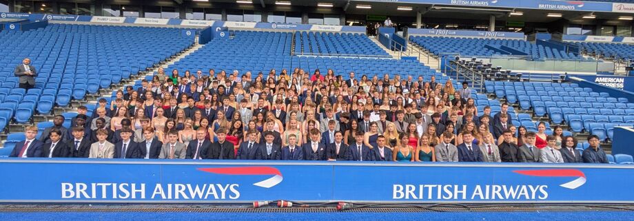 Crowds gathered outside the West Reception of the stadium - home to Brighton & Hove Albion FC – to welcome the students as they arrived in style. After posing for photographs, including a year group portrait in the stands overlooking the famous pitch, students enjoyed a formal two-course meal alongside members of Beacon Academy staff.