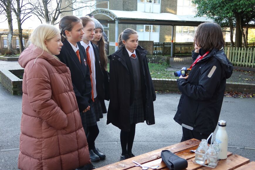 The following day, members of Beacon Academy Eco Club in Years 7, 8 and 10, took part in an audit of the school grounds, conducting experiments investigating temperature, wind and the permeability of different surfaces.