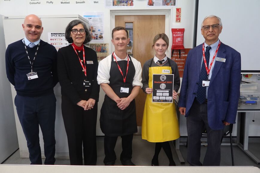 Fifteen finalists were selected and given the Easter holidays to plan a two-course meal that would demonstrate their flair for food and impress the judges at the school final: MasterChef: The Professionals Quarter Finalist and restaurant owner, Chef Ian Brunsdon, our Headteacher, Mr Slattery, and representatives of the event’s kind sponsor, The Rotary Club of Crowborough - Philip Morris and Annick King.
